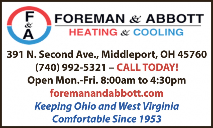 Ads for Foreman & Abbott Heating & Cooling in Middleport, OH
