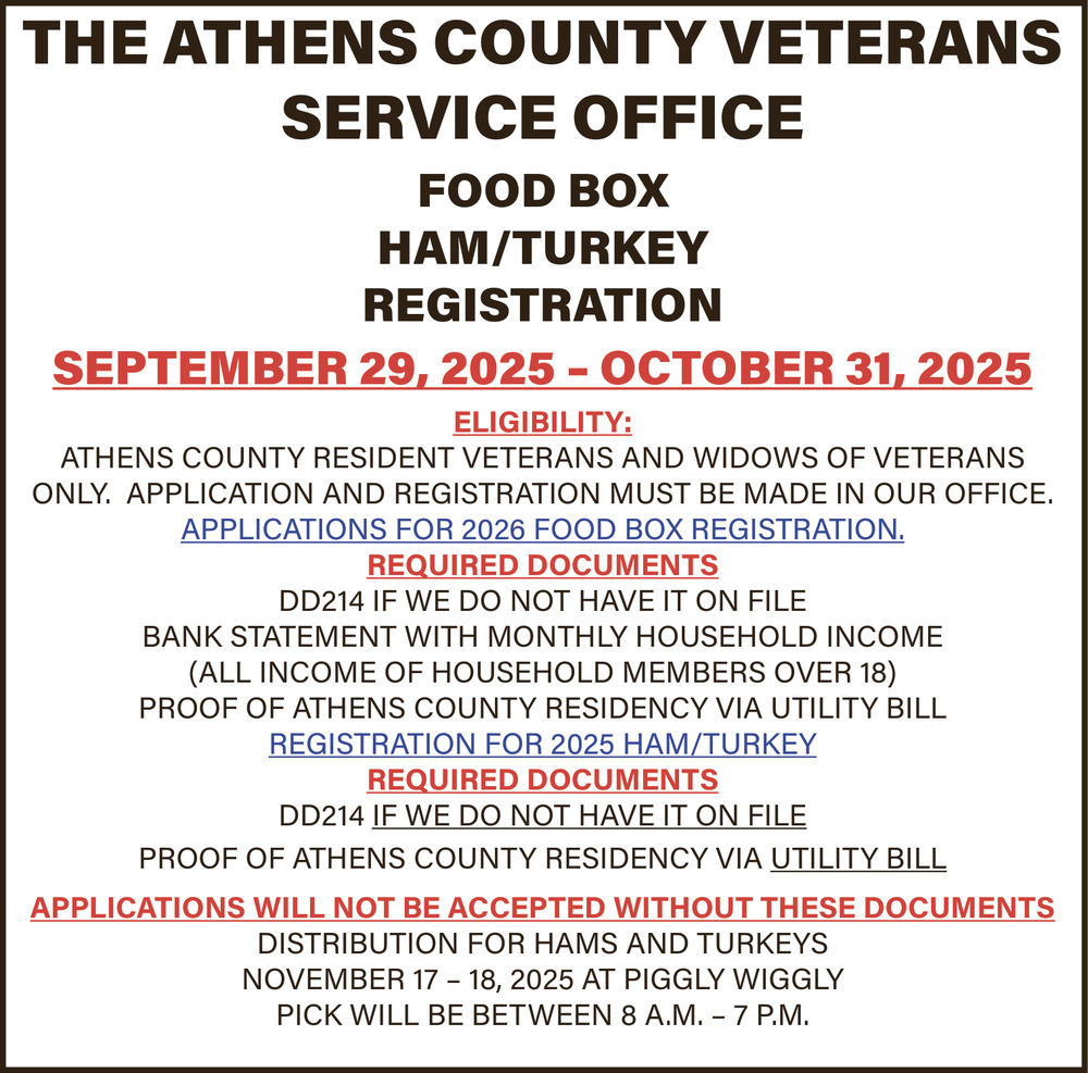 Oct 04, 2025. Athens County Veterans Services Office Associations & Organizations Ads from The Athens Messenger
