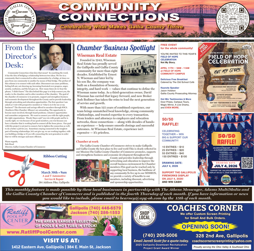 Mar 26, 2026. Gallia County Chamber of Commerce Chamber of Commerce Ads from The Athens Messenger