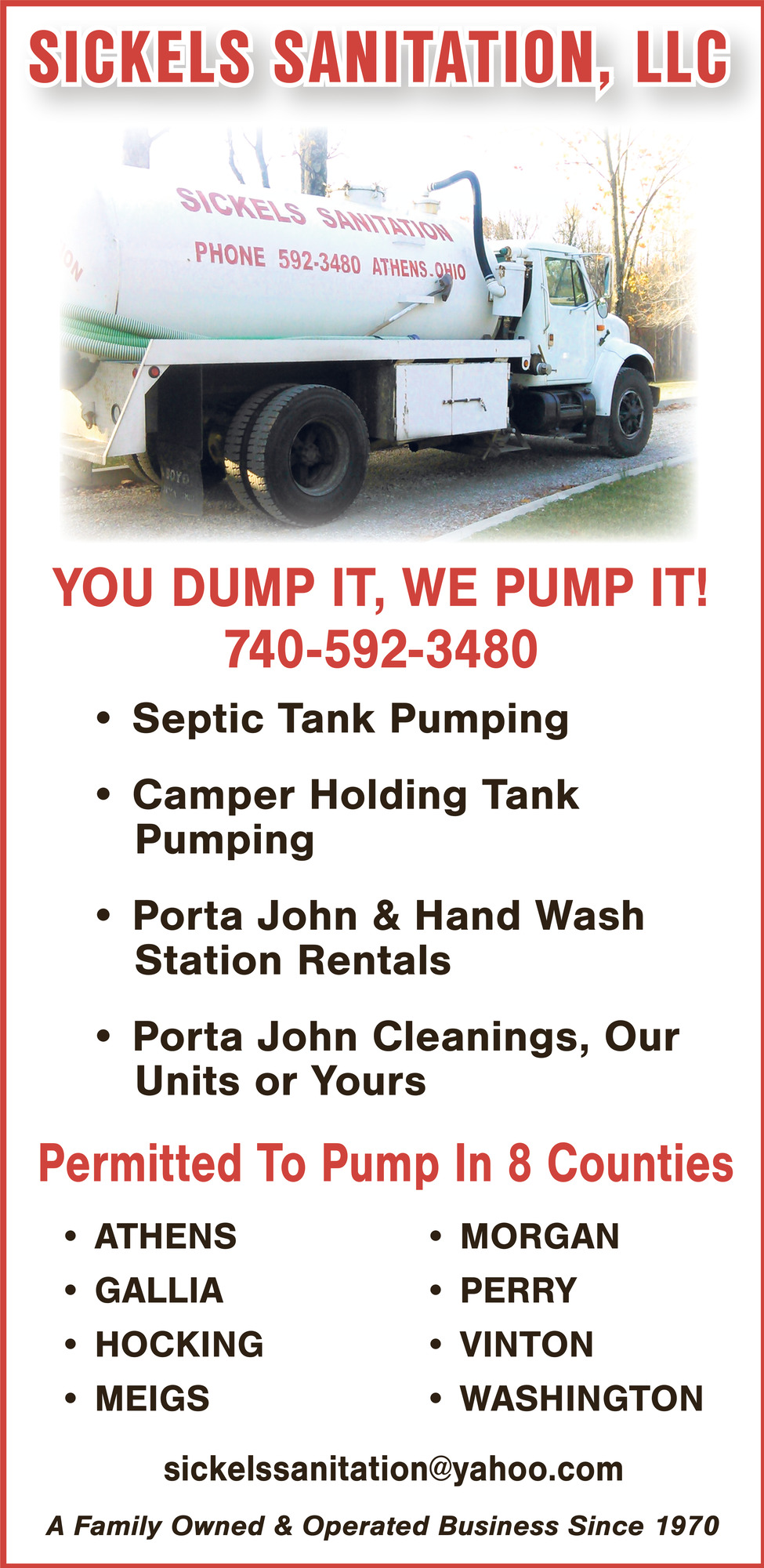 Ads for Sickels Sanitation, LLC in Athens, OH