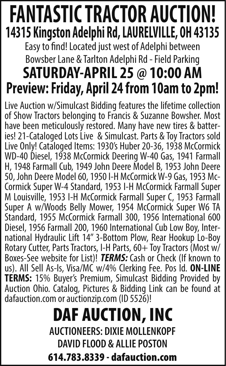 Apr 18, 2026. David Flood & Dixie Mollenkopf Auctions Ads from The Athens Messenger