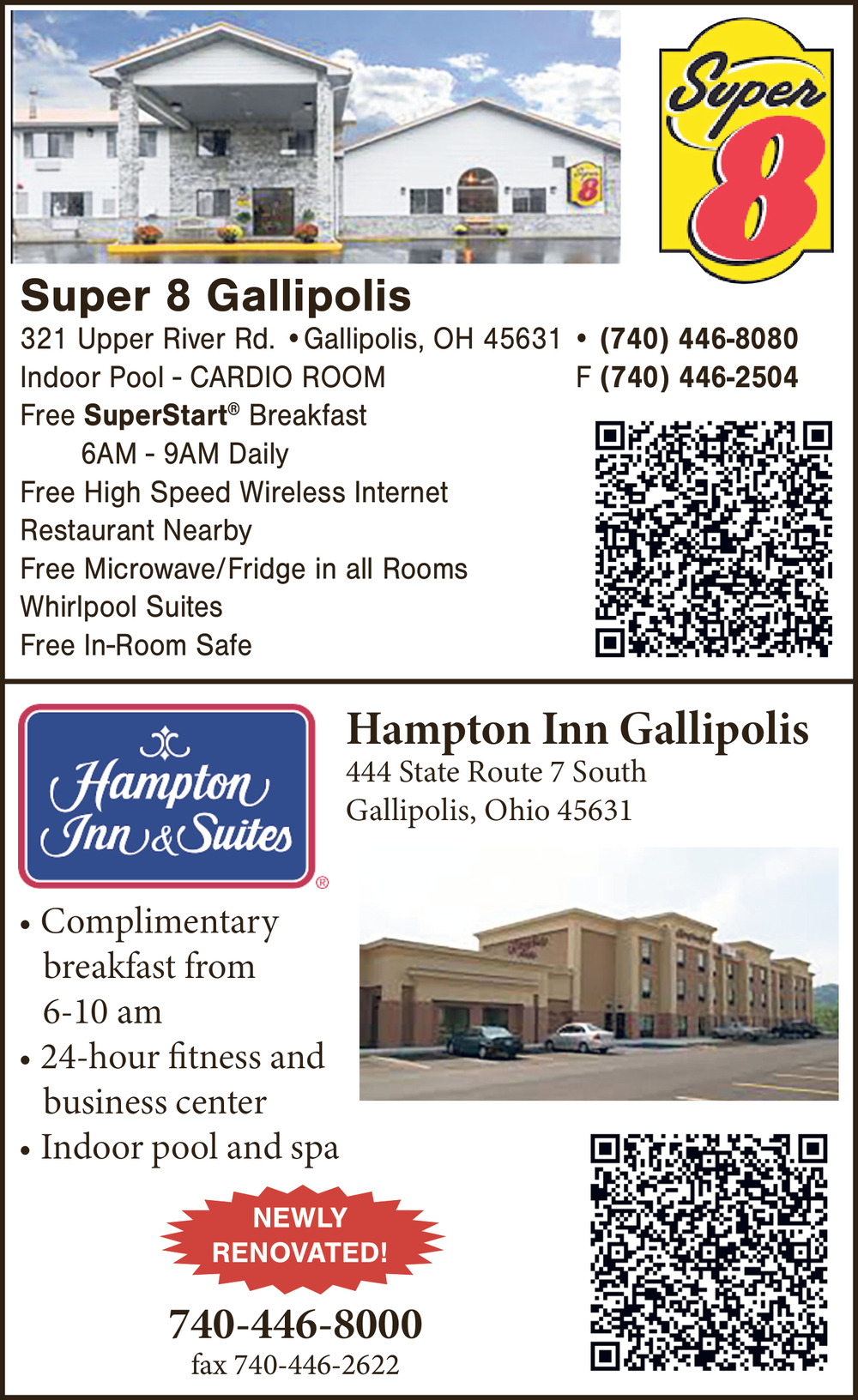 Apr 30, 2026. Super 8 Gallipolis - Hampton Inn & Suites Hotel & Resort Ads from The Athens Messenger