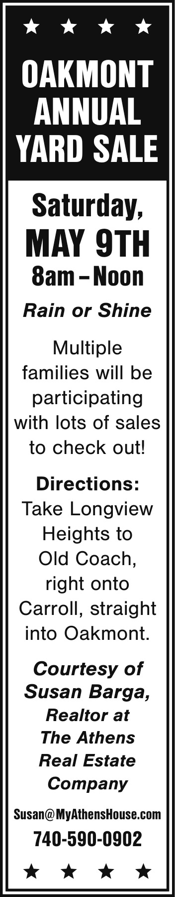 Apr 30, 2026. Susan Barga Real Estate Ads from The Athens Messenger
