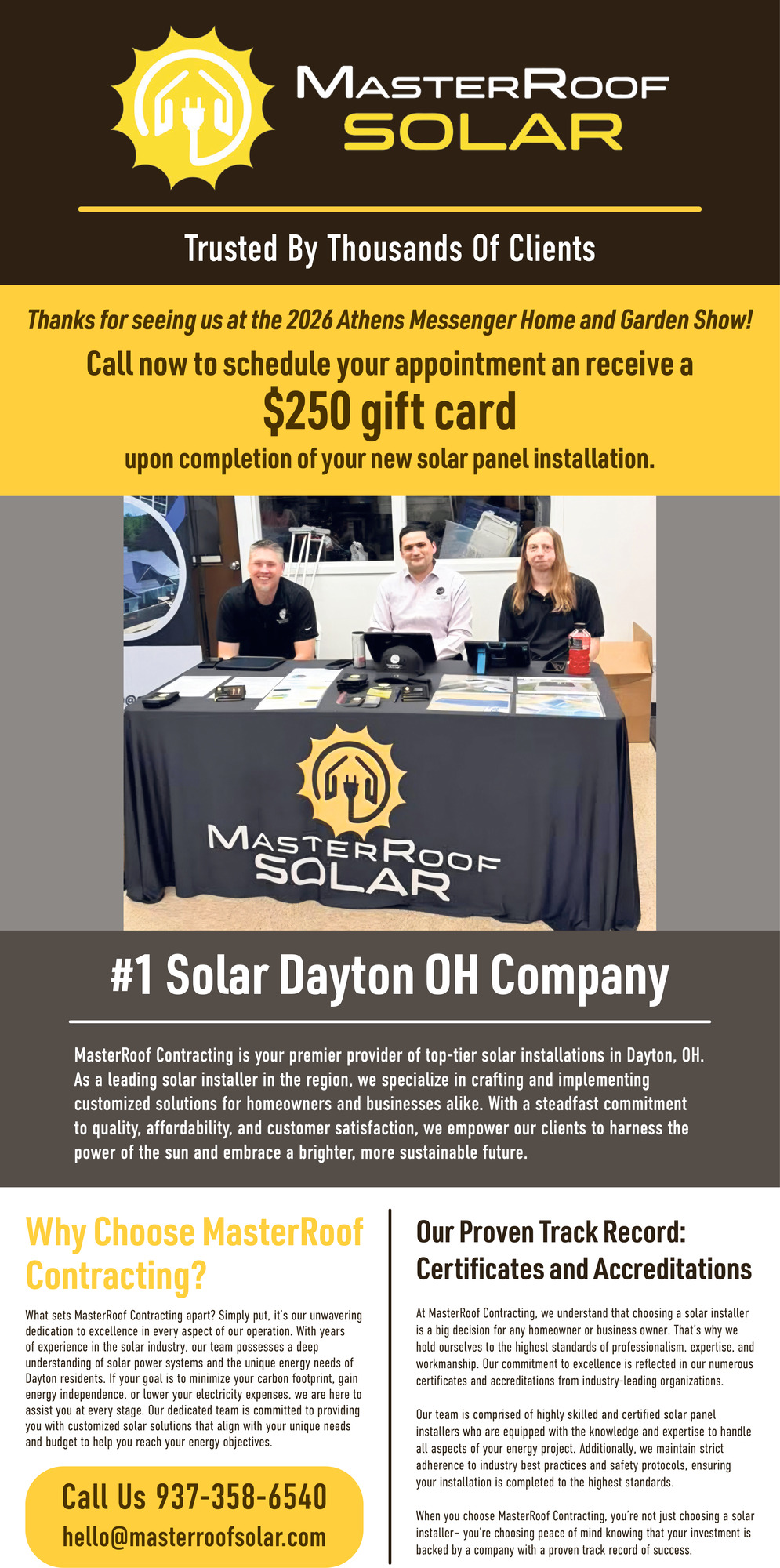 Apr 30, 2026. Master Roof Solar Energy Ads from The Athens Messenger
