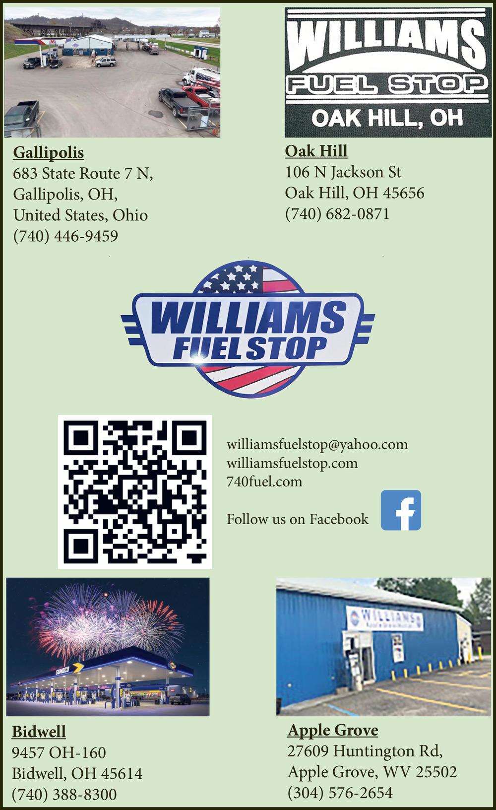 Ads for Williams Fuel Stop in Oak Hill, OH