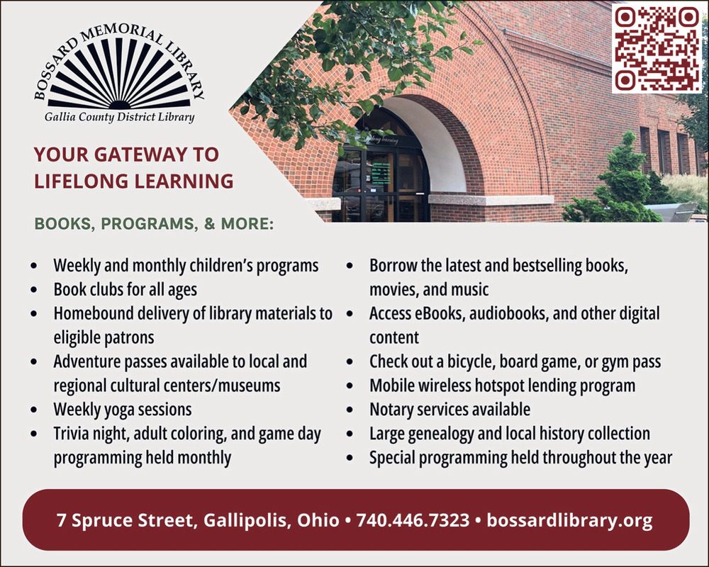 Ads for Bossard Memorial Library in Gallipolis, OH